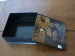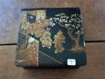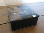 Coffret Napoléon III à décor d'une scène dans le goût japonais (petits manques). 20 x 19 cm. H. 9 cm LOT A RETIRER DANS UNE MAISON DE CAMPAGNE DU PAYS D'OTHE (Aube 10) A 20 MIN DE L'HÔTEL DES VENTES DE TROYES.