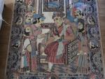 IRAN, Ispahan - Tapis à décor d'une scène de palais avec personnages et faucon. 195 x 125 cm LOT A RETIRER DANS UNE MAISON DE CAMPAGNE DU PAYS D'OTHE (Aube 10) A 20 MIN DE L'HÔTEL DES VENTES DE TROYES.