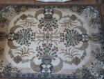 Tapis mécanique à décor floral et de guirlandes sur fond beige. 200 x 140 cm LOT A RETIRER DANS UNE MAISON DE CAMPAGNE DU PAYS D'OTHE (Aube 10) A 20 MIN DE L'HÔTEL DES VENTES DE TROYES.