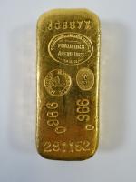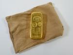 Lingot en or 996 millièmes. Poids 999,96 g non garanti. Compagnie des Métaux précieux, J. Voisin et R. Dussaix essayeurs, n°309977 - 281152, sans certificat. Vendu sur désignation, conservé en banque. Ce Lot ne sera pas vendu en live. Vente uniquement sur ordre d'achat ou au téléphone et soumis à inscription préalable avec une caution 5.000 € pour les personnes non connues de l'étude (merci d'appeler notre étude pour la mise en place de celle-ci).
