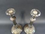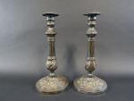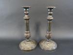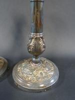 Paire de bougeoirs d'époque Louis-Philippe en bronze argenté à riche décor feuillagé. Haut : 29 cm - 152