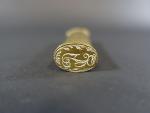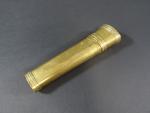 Etui à cire en laiton de section ovale, un embout chiffré J.G, l'embout du couvercle gravé "Jacques Godefroy, md tamisier à Vitry sur Marne", ép. début XIXème. Haut : 13 cm.