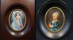 Deux miniatures : portrait d'une princesse au diadème ; portrait d'une fillette à la coiffe en dentelle, ép. XXème. 8 x 6,2 cm