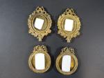Deux paires de petits cadres photos en bronze à décor floral et de rubans noués, une paire à vue ovale, une paire à vue ronde. Haut : 11,5 et 8,5 cm