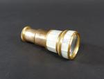 Lorgnette de théâtre en laiton à deux tirages, monture à doucine gainée de nacre. Diam. : 4,9 cm. Long. (dépliée) : 11,2 cm. Long. (pliée) : 4,9 cm.