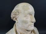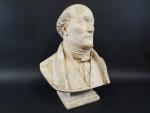 Ecole française vers 1850 : Portrait d'un homme de condition. Plâtre patiné façon terre cuite. Haut. : 54 cm. Expert : Cabinet Lacroix-Jeannest Tél 01.83.97.02.06 - 1002
