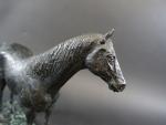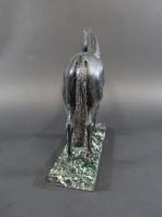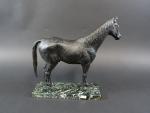 Cheval debout en bronze patiné, sur socle en marbre vert, signé Hau(?) Haut. 29 cm Long. 31 cm