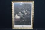 MORELLIO D'après. L'adoration des bergers. Gravure en noir. 50 x 36 cm. Encadré sous verre, rousseurs