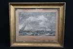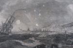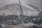 D'après VERNET Joseph Claude. Vue du port de Dieppe, d'après le tableau peint en 1757. Gravure en noir. 46 x 73 cm. Encadré sous verre (usures)