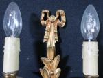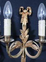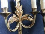 Paire d'appliques murales en bronze doré à deux bras de lumières à décor de cor...