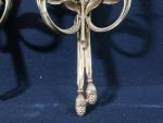 Paire d'appliques murales en bronze doré à deux bras de lumières à décor de cor de chasse, les fûts ornés de glands, lauriers et surmontés de rubans noués.