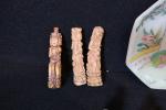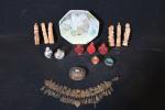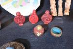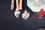 - Cinq tabatières : dont 3 en laque rouge et 2 en porcelaine (2 bouchons en pierre dure)