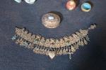 - Un collier en métal incrusté de 3 pierres dures et breloques (long.: 35 cm)