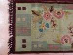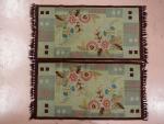 Paire de tapis Art Déco de forme rectangulaire à décor floral et graphique polychrome. Vers 1930 Dimensions : 140 x 70 cm