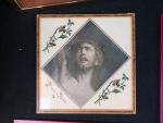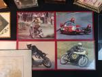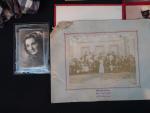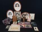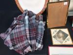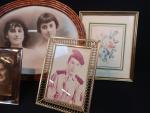 Réunion de nombreux cadres photo et portraits de famille - motards, kilt écossais en laine à motifs tartan - aquarelle de fleurs