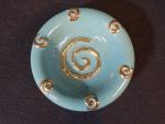 - Coupe vide poches en faïence émaillée turquoise à tourbillons dorés (D:20 cm)