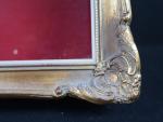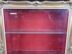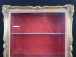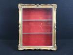 Vitrine murale en bois doré style rocaille de forme rectangulaire. Dimensions : 58 x 47 x 13 cm