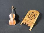 Lot comprenant : - 1 lutrin de table en bois - 1 petit violon d'enfant à restaurer (haut. totale : 44 cm)