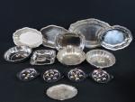 Ensemble de 14 plats en inox, légumiers, assiettes à escargots,...
