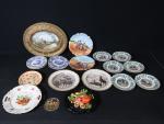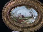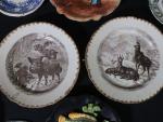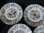 - 6 assiettes à dessert à décor peint de scènes du XIXème siècle ;