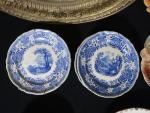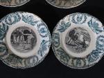 - 4 assiettes à décor de paysages en camaïeu de bleu ;