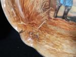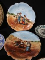 - 2 assiettes polylobées à décor peint de scènes paysannes, signées A. RENE ;