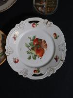 - 1 assiette en porcelaine à décor de poires et de raisins ;