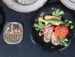 - 1 assiette décorative à décor de poissons, moules et algues en relief. (usures)