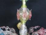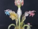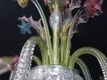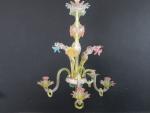 Lustre en verre de Murano à 4 branches de lumière, décor de fleurettes roses, bleues et jaunes (H : 61cm)