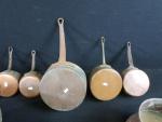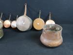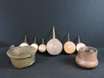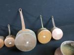 Lot en cuivre comprenant : - batterie de 6 casseroles...