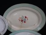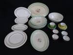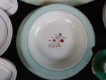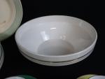 - 6 plats en faïence à décor central de fleurs et liserés verts (1 plat avec manque, 1 plat cassé recollé) ;