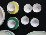 - 6 tasses et 6 sous-tasses en porcelaine émaillée colorée.