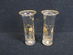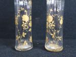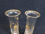 Dans le goût de Saint Denis. Paire de vases cornet à pans coupés à décor émaillé doré de roses et liserés dorés (H : 15cm) (accident au col)