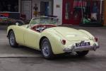 MG A, Année 1956, 102 819 km, 7 CV fiscaux, numéro de série 57943 (numéro caisse), roues fils en très bon état, couvre tonneau neuf, voiture restaurée en 2011 et repeinte en jaune clair.