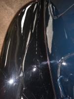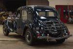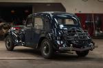 Citroën Traction II BL, Année 1938, 11 CV, 46 CH, boite 3 vitesses, bicolore noire et bleu (Il s'agit, sauf erreur, du bleu Emeraude avec ailes noires et jantes gris irisé : Couleur de série sur 7C 11AL 11BL de 1936-1939), 79 578 km, numéro de série 388378. En 1938, la production a été de 36.526 unités. Carrosserie en très bon état d'origine et c'est assez rare pour être souligné. A noter une rayure enfoncée sur la malle arrière, des rayures sur les ailes avant gauche et droite, la présence de cloques sur le toit et au-dessus de la porte arrière gauche. L'ajustage des amovibles est bon et les joints d'étanchéité des portes sont neufs. Pas de trace de choc au niveau de la structure.