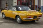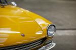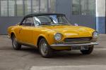 Fiat 124 Sport Spider 1400, Année 1968, 8 cv fiscaux, 88 CH, numéro de série 7010, 79045 km, carburateur double corps Weber, boîte de vitesses 4 mécanique. Probablement rouge, le véhicule a changé de couleur. La peinture est perfectible : peau d'orange généralisée, détourage de mastic sur face avant et portes, décollement de peinture.