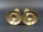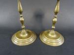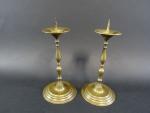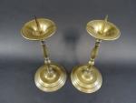 Paire de petits pique-cierges en laiton à fut tourné, ép. XIX's. Haut : 24 cm