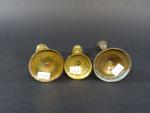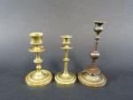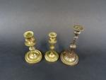 Trois mini-bougeoirs en laiton, ép. XIX's. Haut : 9 à 12 cm