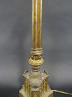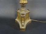 Pied de lampe Troubadour de style néogothique en bronze doré, fut en colonne triple sur...
