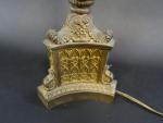 Pied de lampe Troubadour de style néogothique en bronze doré,...