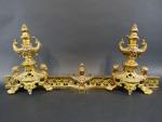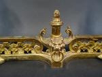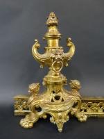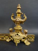 Devant de foyer en bronze en forme de vase à mufle de lion sur base à tête de femmes, pieds griffes. Haut.: 36cm Long. totale : environ 100cm