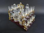 Cave à liqueur d'époque Napoléon III en marqueterie de style Boulle, intérieur avec quatre carafes et seize verres à liqueur à décor gravé (quelques soulèvements et manques à la marqueterie)