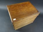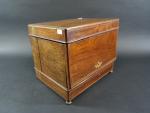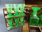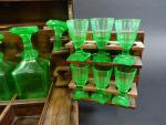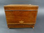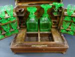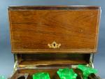Cave à liqueur d'époque Napoléon III en placage de palissandre à filets, l'intérieur avec deux carafes (col cassé) et douze verres à pans coupés et pied carré en verre ouraline (cinq verres avec égrenures).