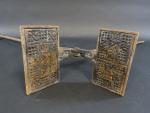 Moule à oublies à palettes en fer forgé à décor de tulipes et marqué A.M 17?7, ép. XVIII's, 18,5 x 8,5 cm (oxydations) - 2