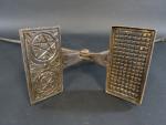 Moule à oublies à palettes en fer forgé à motifs de rosaces avec étoile, monogramme. I.H.S et fleurs de lys, époque XVIIIème, 18.5cm x 10cm - 8