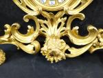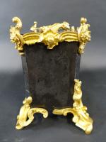 DENIERE à Paris : Pendule borne en marbre noir et bronze doré de style rocaille à décor de fleurs, rinceaux, secrétions etc, mouvement signé. Haut : 32 cm - Larg : 45 cm