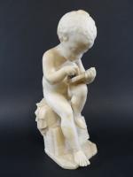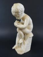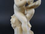 D'après Antonio CANOVA : Le jeune scribe. Sujet en albâtre. Haut : 36 cm (un angle de la base recollé)