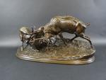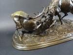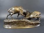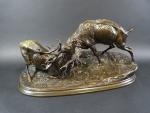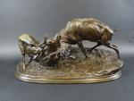 MENE Pierre-Jules (1810-1879) : Combat de cerfs. Groupe en bronze...