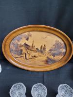 - Tableau ovale bois signé GUEBWILLER longueur 32,5 cm hauteur 23,5 cm .