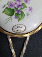 - Miroir à main décor floral en porcelaine de Limoges la dorure est patinée hauteur 20,5 cm .